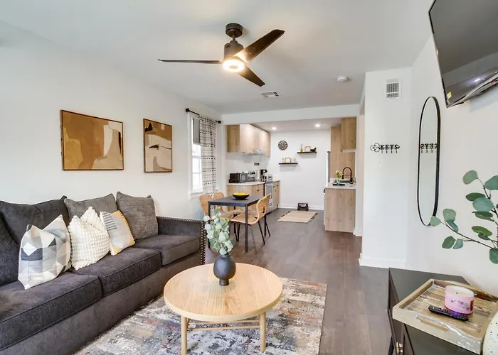 4 Mi To French Quarter Walkable Apt With Yard dispose d'un salon et d'une cuisine entièrement équipée, ainsi que de conforts tels qu'une climatisation. Le domicile de 79 m² compte 2 chambres à coucher. Il y a 1 salle de bains. Un sèche-cheveux et des draps de bain sont également disponibles.